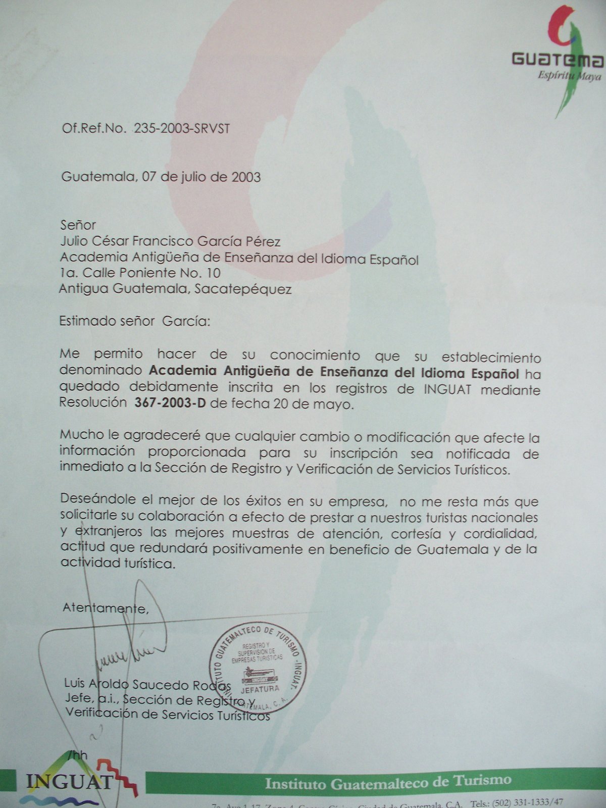 Learn a little about our accreditation and recommendations we have received over the years of working in Antigua Guatemala.