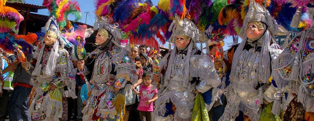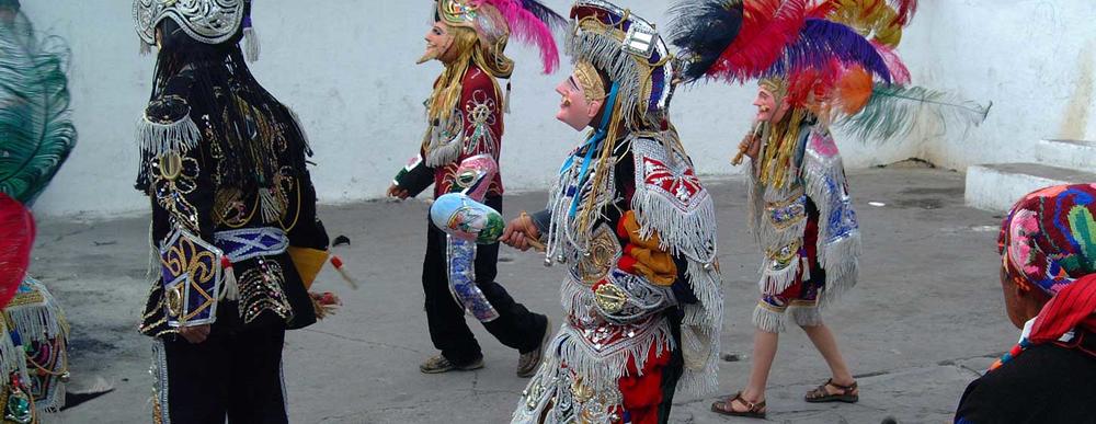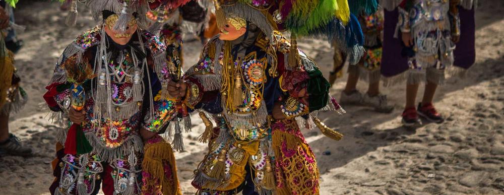 This dance symbolizes the struggle between the Moors and the Christians of Spain, showing the Muslim power in the Iberian peninsula (they usually wear red suits and dark masks during this dance) that clashes with the Catholic army, which finally wins.
