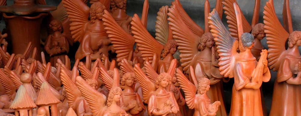 And of course, you will find other decorative pieces, such as angels, Virgins (as well as saints and other religious figures), candlestick holders, censers and many others, these are produced mostly in Antigua Guatemala.
