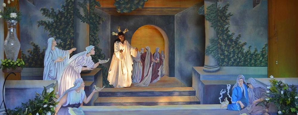 One of the many Catholic traditions related to the feast of Holy Week is the creation of "altars of veiling" or "Lenten altar". As an honor to the images of veneration that will make their processional journey through the streets of Antigua Guatemala, the Brotherhoods of the different Catholic and Parish Churches prepare Solemn Velaciones to the images of Jesus Nazareno; Jesus Buried; Virgen de Dolores and Virgen de Soledad, among others.