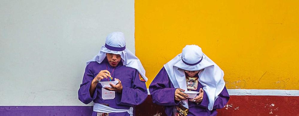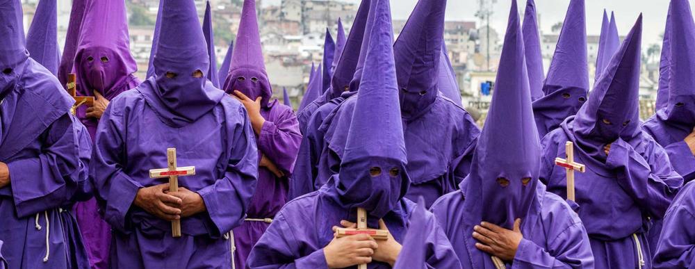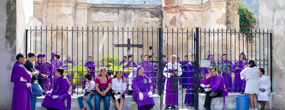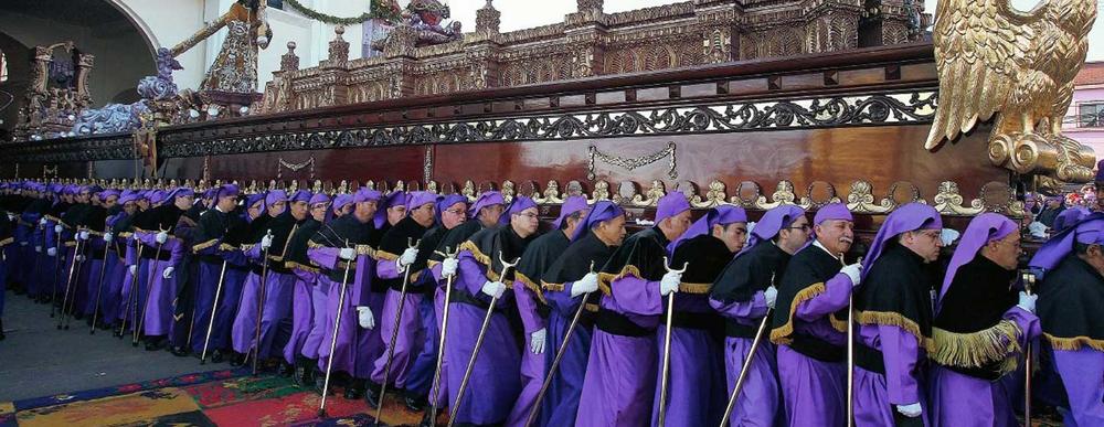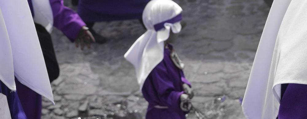 The Cucuruchos are Catholic people who wear a purple dress called "Túnica", who participate in processions that take place during Lent and Holy Week in Antigua Guatemala and Guatemala. A 'Cucurucho' can be a man or a woman, although the women 'cornet' are also called Devota Loader. The activity of the Cucuruchos stands out for carrying the processions, but also for listening to and accompanying the processional marches and performing contemplative prayers of gratitude, forgiveness and patience to God.
