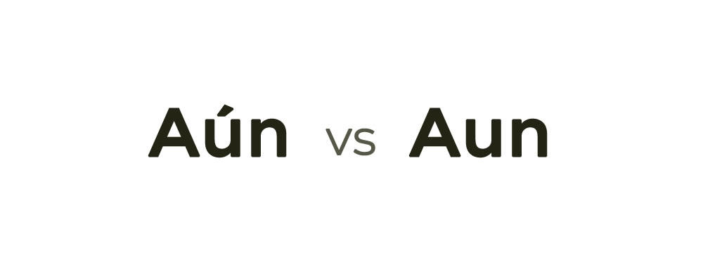 - The word ‘aun’. This word uses accent only when used to replace the word TODAVÍA (still - yet). For example : ‘Aún estamos trabajando.’ On the contrary, this word has no accent when the meaning is the same as AUN (even). For example : ‘Aun tomando más café, tube mucho sueño.’